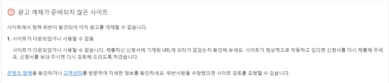 구글애드센스 거절 사유 "사이트가 다운되었거나 사용할 수 없음" 메일로 받았을때 해결방법 모음.