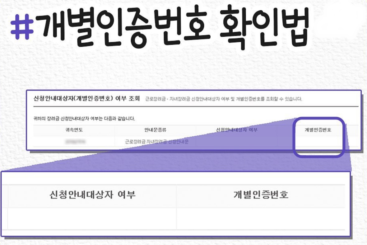 7. 근로장려금 개별인증번호 확인 방법