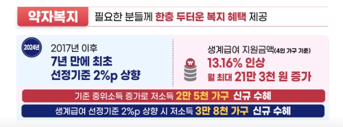 정부 수립일의 역대최대로 지원 기준을 인상하면서복지 대상자가 더 확대되고 대상자선정기준도 상향되면서