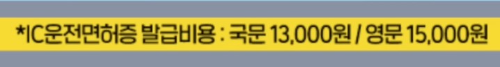 IC 운전면허증이 없다면발급 비용이 국무는 13,000원 영문은 15,000원이 들어갑니다