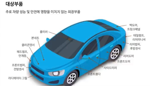 정부가 정한 품질 성능평가와 공정심사 등을 거쳐서 품질인증을 받고 있고 차량 성능과 직결되는 주요 부품이 아니라
