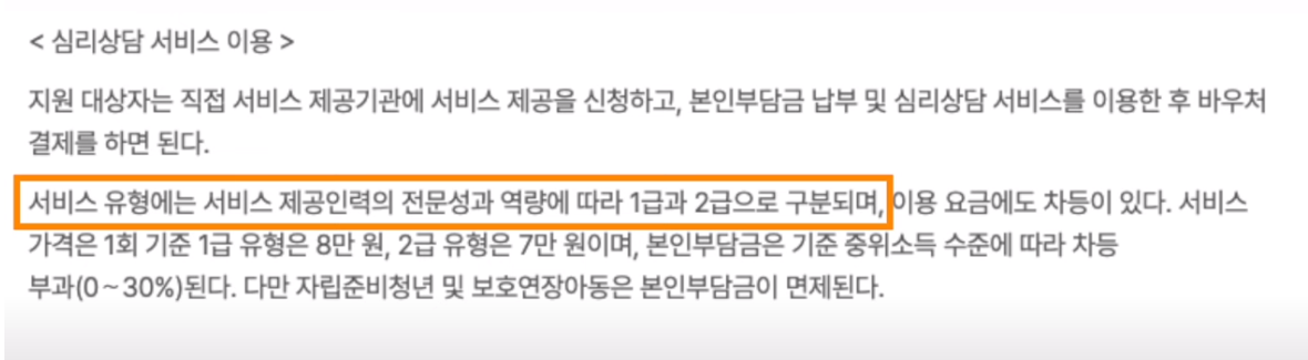 지원 대상자는 직접 서비스 제공기간에 서비스 제공을 신청하고 본인부담금 납부 및 심리상담 서비스를 이용한 후에 바우처 결제를 하면 됩니다.