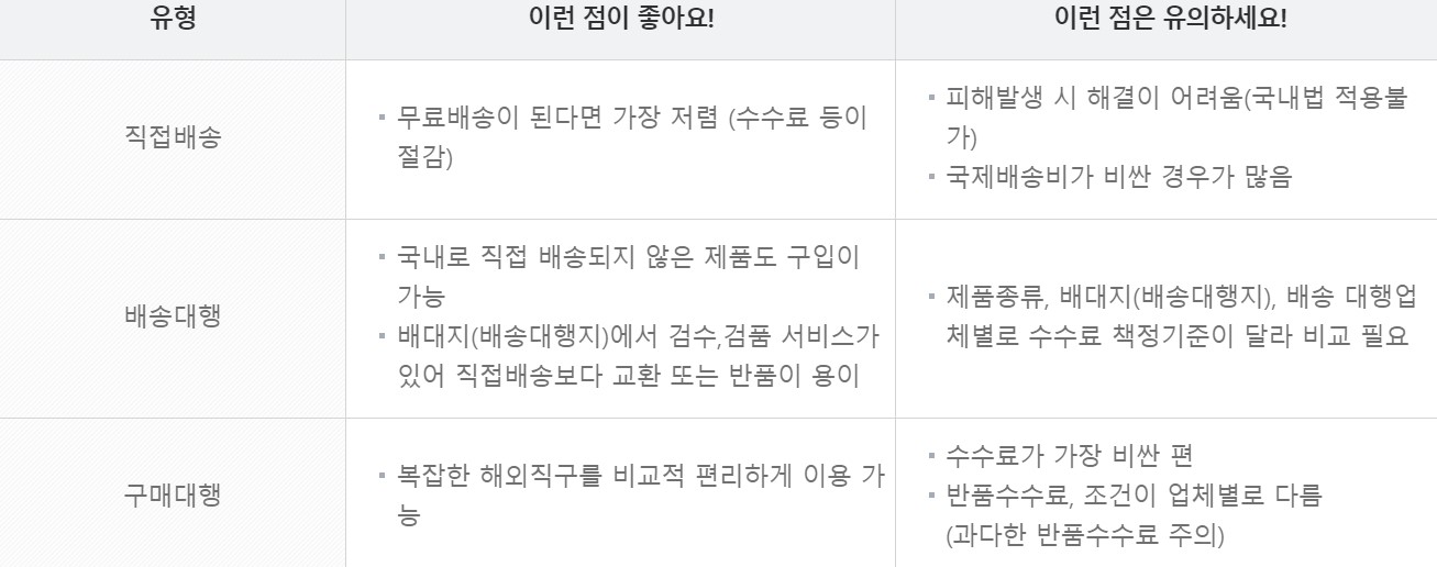 각 해외직구 유형별 장단점을 알아보겠습니다.