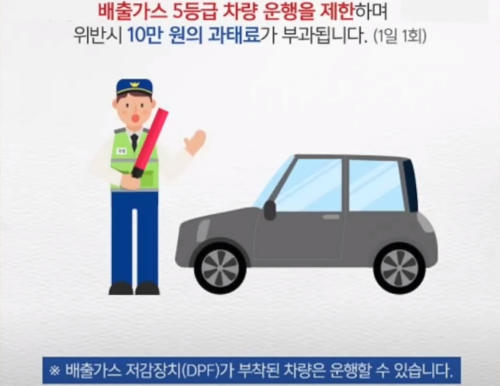 기존의 계절관리제 시행에 따라 배출가스 5등급 차량은 수도권도로에 진입할 수 없었습니다.