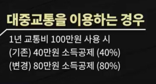 기존의 전통시장 100만 원 / 대중교통 1000만원 / 도서 공연등 100만원 이렇게 각 항목별로 따로 100만원 까지 공제가 되었습니다.