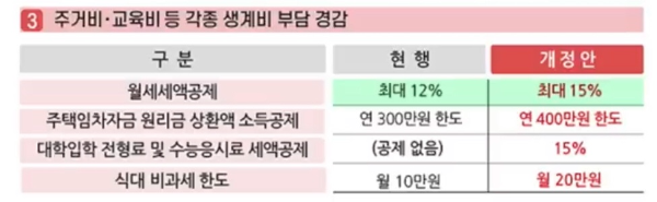 주택담보대출 원리금 상환액 소득공제도 연 300만 원에서 400만 원으로 늘어납니다.