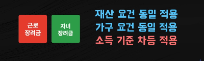 올해부터는 근로장려금과 자녀장려금은 재산요건과 가구요건이 똑같이 적용되고 소득기준은 다르게 적용합니다.