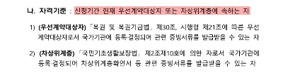 대한민국 국적자로 민법상 만 19세 이상. 신청기간 현재 현재 우선계약대상자 또는 차상위계층이 해당.