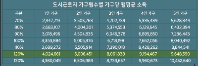 기준 중위소득보다 금액이 훨씬 높습니다. 120% 또는 130% 이하로 과거보다 소득기준이 많이 올랐지만 각각 기준이 다릅니다.