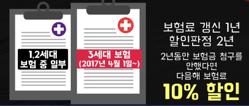 1,2세대 보험 중에서도 일부 할인이 가능한 상품도 있지만 2017년 4월 1일 이후에 시작된 3세대 보험은 모두 1년 단위로 보험료가 갱신되고 할인 판정 기간도 2년으로 적용하기 때문에 2년 동안 보험금 청구를 안 하셨다면 다음에 보험료가 10% 할인됩니다.