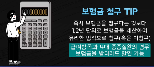그래서 즉시 보험금을 청구를 하는 것보다는 1,2년 단위로 보험금 청구를 한 번에 하셔서 금액이 적다면 청구를 안 하는 것이 더 유리할 수 있습니다.
