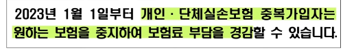 올해부터 이렇게 실손보험의 중복 가입한 경우 둘 중에 하나를 중지해서 보험료를 줄일 수 있게 됩니다.