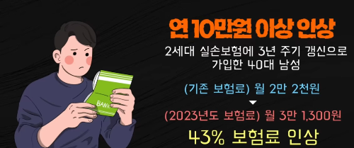 그리고 갱신주기에 따라 5년 주기로 인상되는 보험에 가입하신 분들은 인상률이 50%가 넘는 경우도 생기게 됩니다.