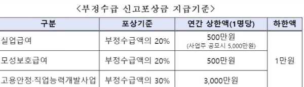 이번 고용노동부에서 논의 중인 내용 중에 하나는 부정수급 신고를 활성화하기 위해 신고포상금제도를 크게 증액한다고 합니다.